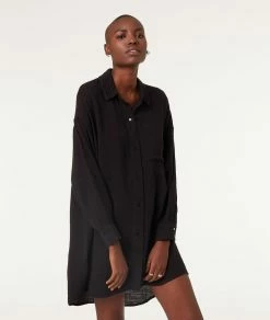 Chemises De Nuit | Chemise De Nuit En Coton NOIR | Etam Femme