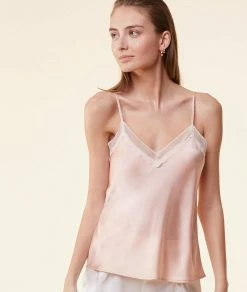 Pyjamas Satinés Et Chics | Caraco Décolleté Dentelle ROSE | Etam Femme