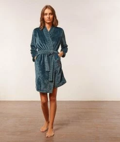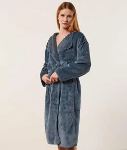 Pyjamas éco-responsables | Déshabillé Velours Intérieur Fausse Fourrure BLEU | Etam Femme