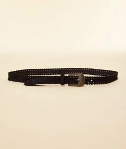 Accessoires Prêt-à-porter | Ceinture Croûte De Cuir Bords Tressés NOIR | Etam Femme