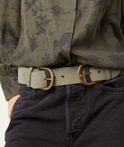 Accessoires Prêt-à-porter | Ceinture Croûte De Cuir Bords Tressés KAKI | Etam Femme