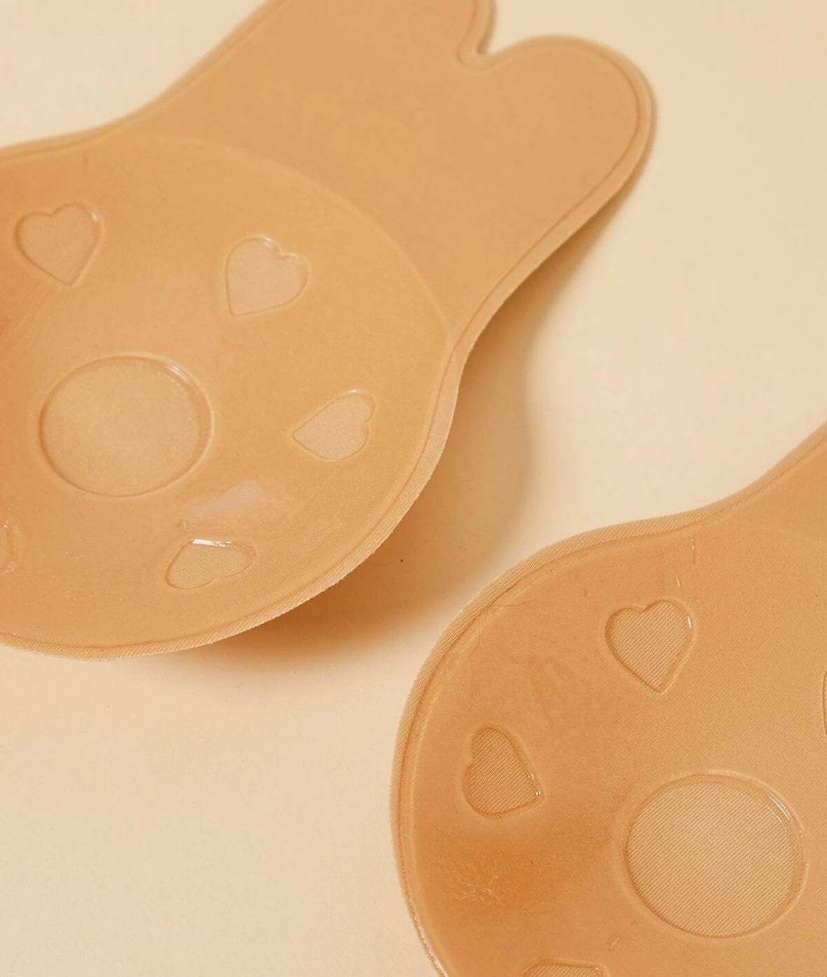 Remontés, les seins affichent un joli décolleté sans soutien-gorge grâce à cette astuce de pro : Des coques adhésives et réutilisables. Le soutien-gorge liftant emboîte la poitrine et se colle sur décolleté :