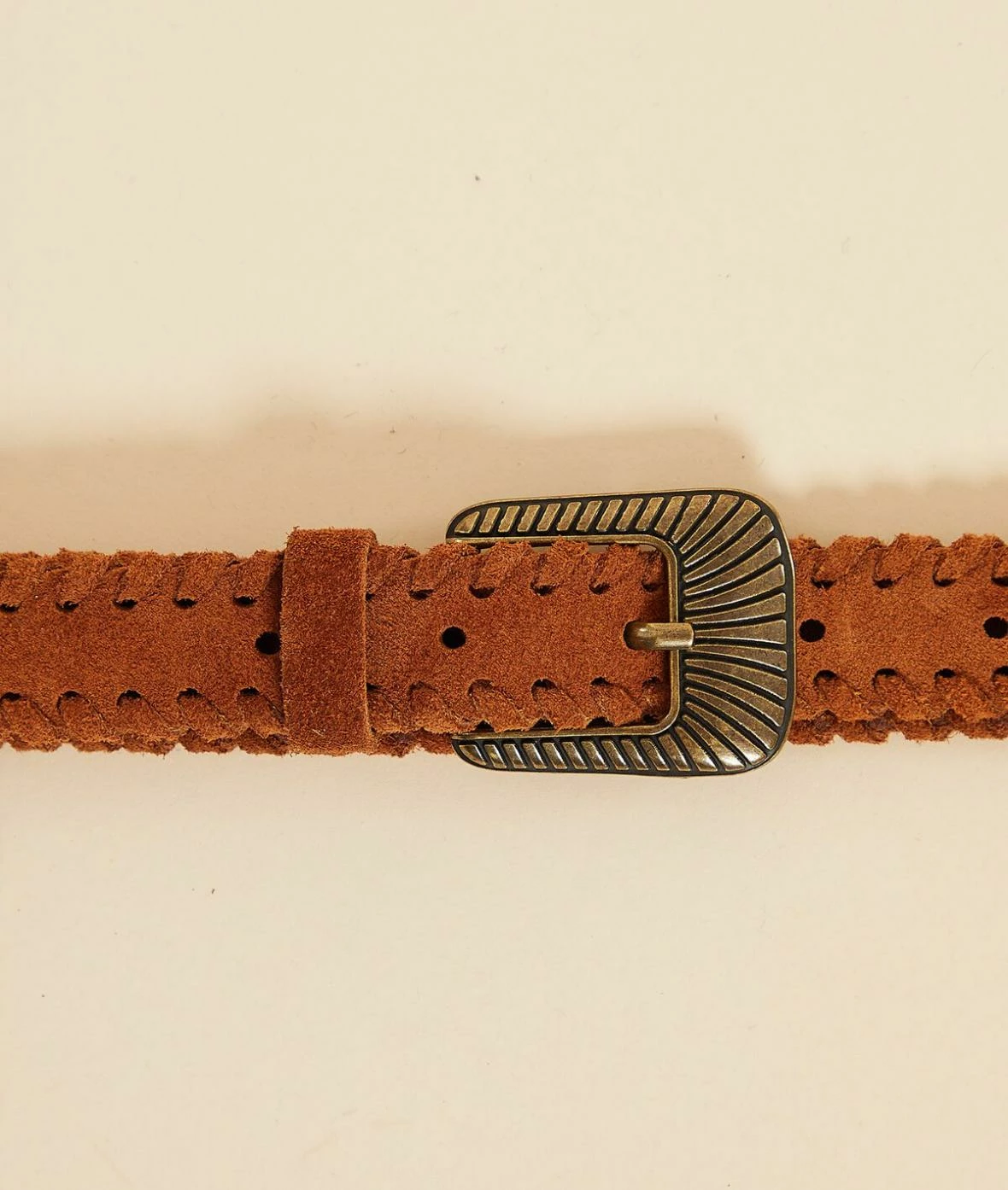 Accessoires Prêt-à-porter | Ceinture Croûte De Cuir Bords Tressés CAMEL | Etam Femme