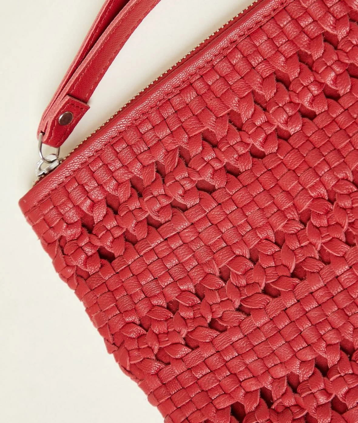 Cuir tressé pour cette petite pochette chic et pratique qui se glisse dans le sac pour garder ses essentiels à portée de main.