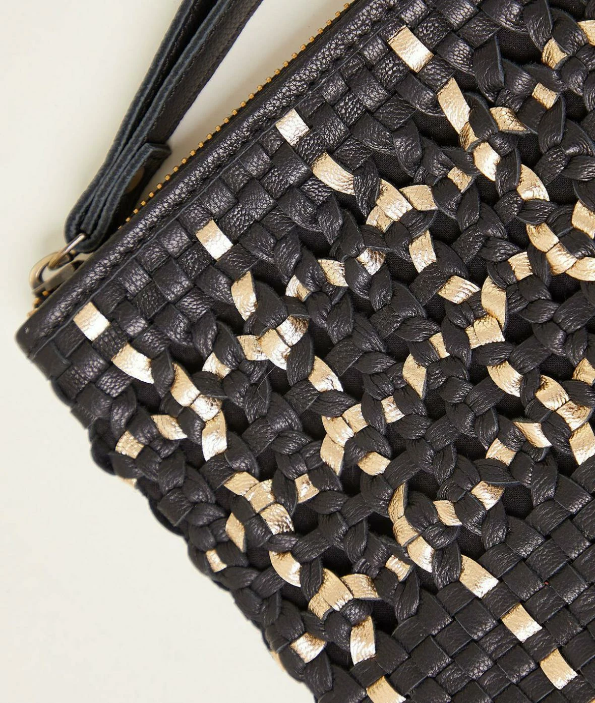 Cuir tressé pour cette petite pochette chic et pratique qui se glisse dans le sac pour garder ses essentiels à portée de main.
