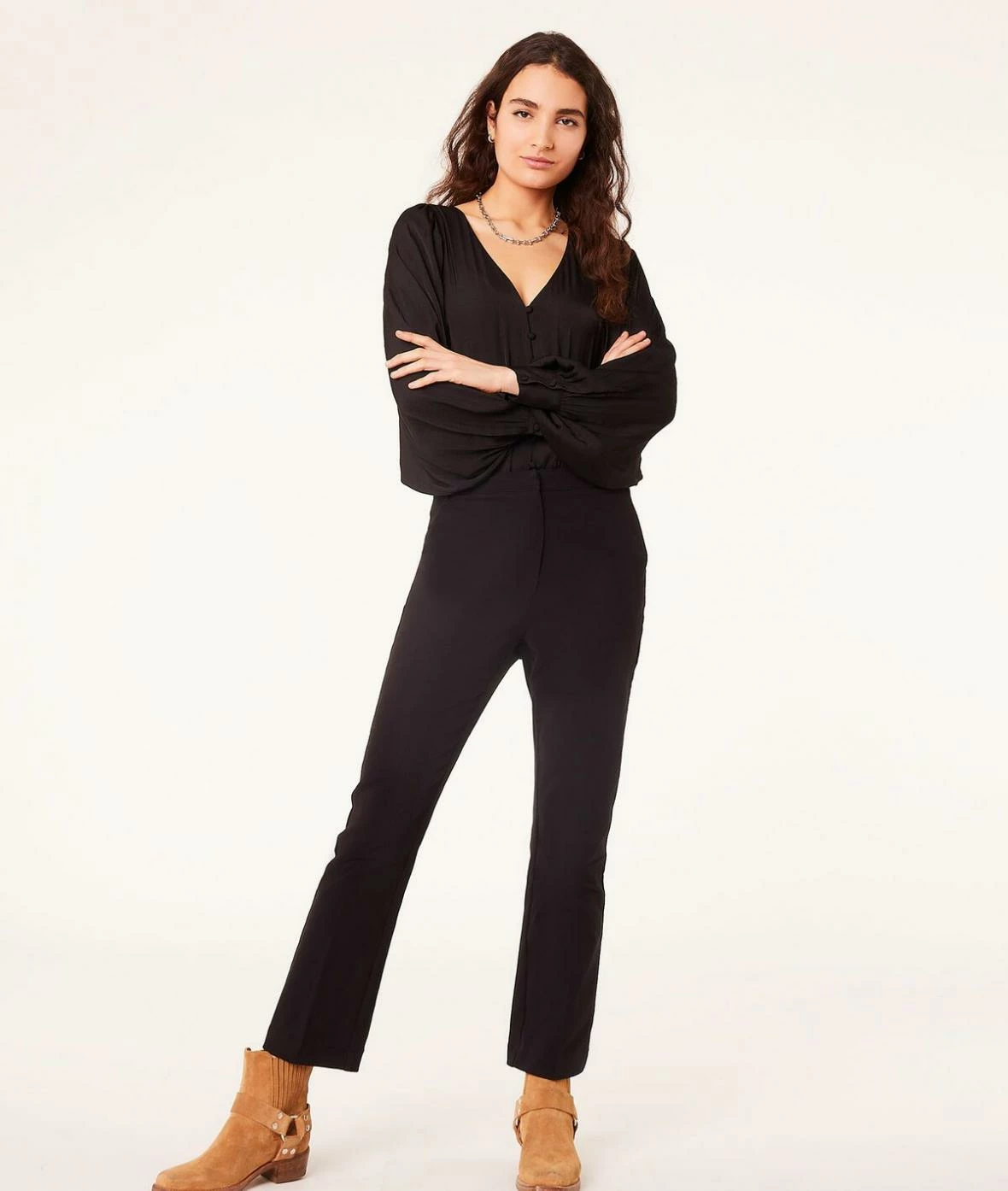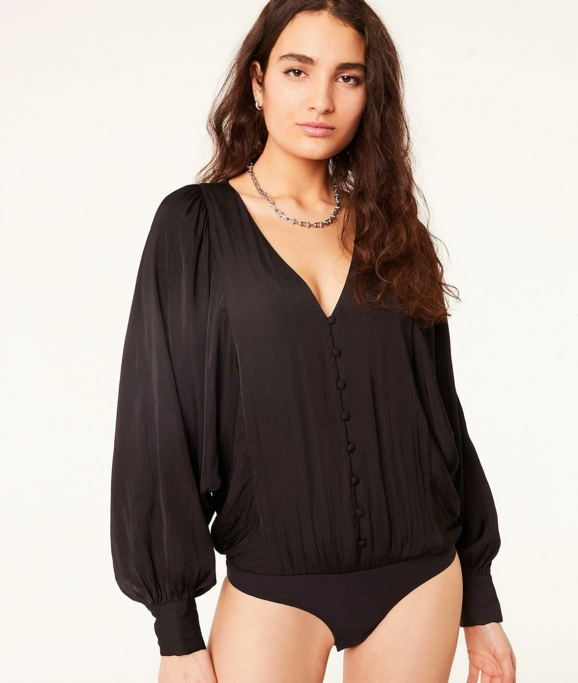 Ce body boutonné aux volumes aériens dévoile un joli décolleté en V et réinvente la blouse classique.