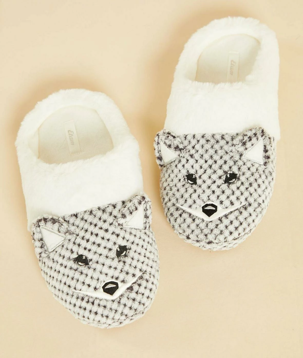 Chaussons & Trousses | Chaussons Mules Animaux GRIS CLAIR | Etam Femme