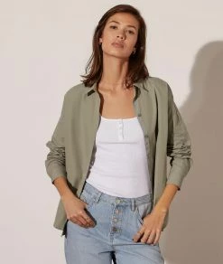 Chemisiers & Blouses | Chemise En Coton KAKI CLAIR | Etam Femme