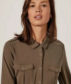 Chemisiers & Blouses | Chemisier Avec Poches Plaquées KAKI FONCE | Etam Femme