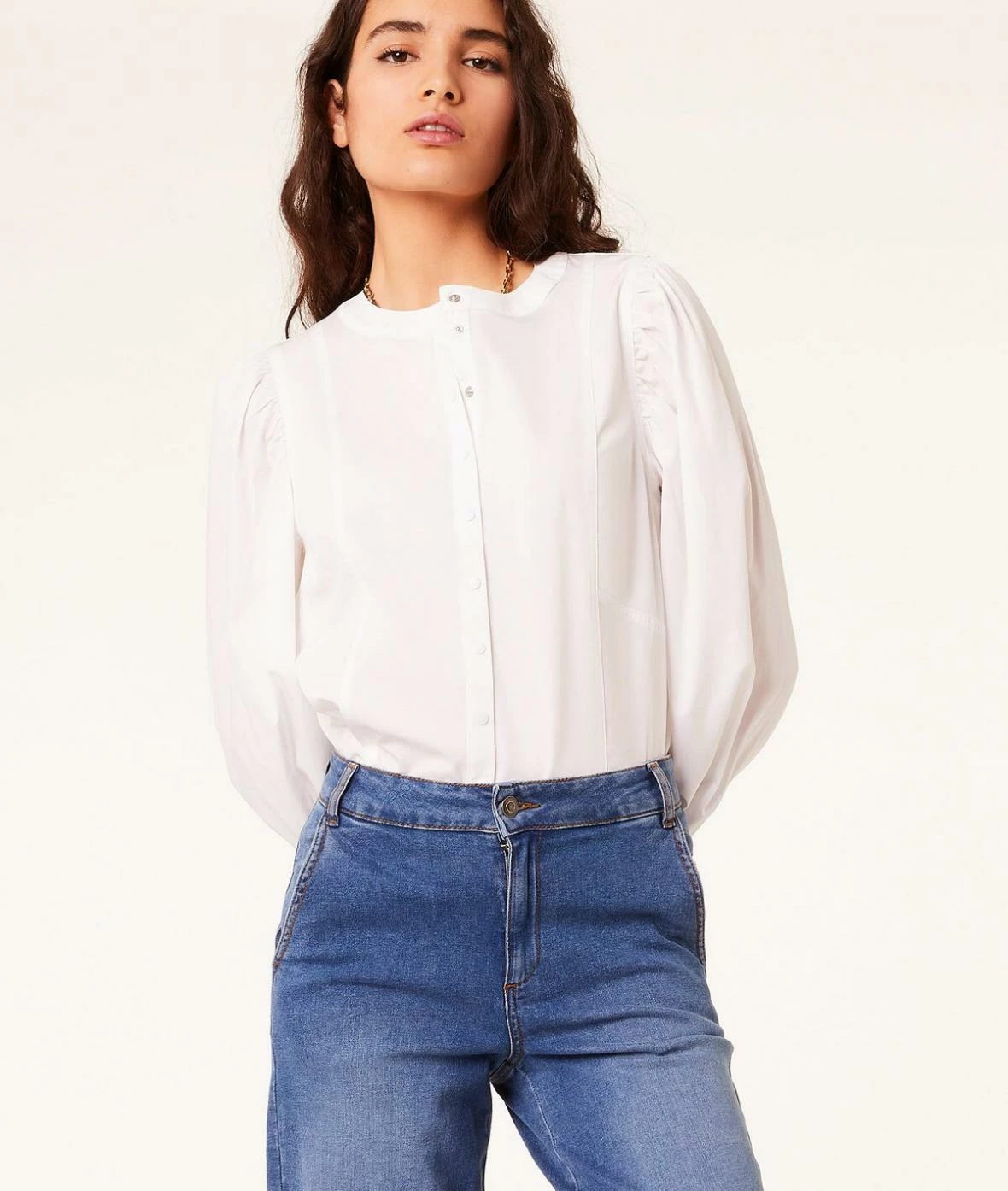 Les proportions sont revisitées dans cette chemise aux manches bouffantes.