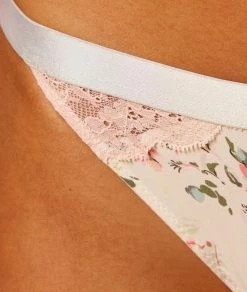 Une dentelle délicate se pose au dos de cette culotte à l’imprimé fleuri.