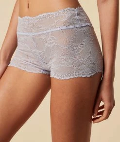 Culottes En Dentelle | Shorty Boy Leg En Dentelle Extensible Et éco-responsable BLEU CIEL | Etam Femme