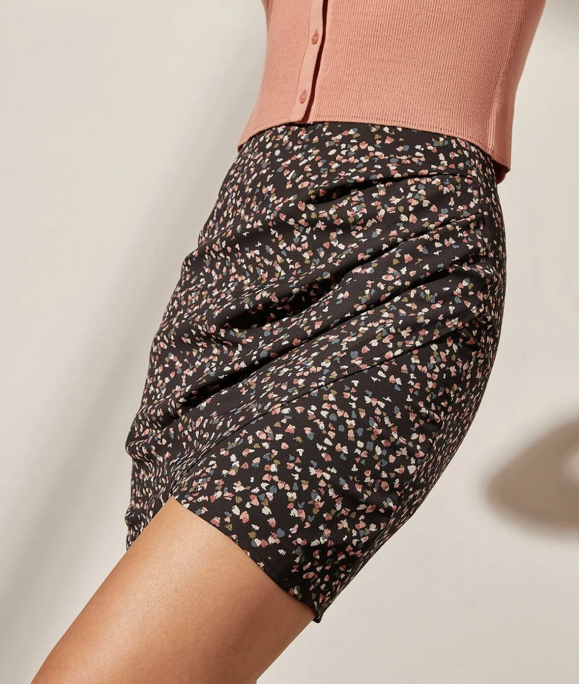 Féminine et audacieuse avec sa coupe portefeuille, cette jupe courte est légèrement drapée sur le devant et dévoile un imprimé coup de cœur.