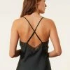 Des bandes de dentelle jouent à cache cache avec la peau et la dévoilent avec subtilité sur ce caraco délicatement satiné.