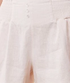 Un lin ultra doux pour des nuits en toute légèreté. Ce short à la coupe légèrement évasé est smocké sur les côtés et dévoile des boutons nacrés sur le devant.