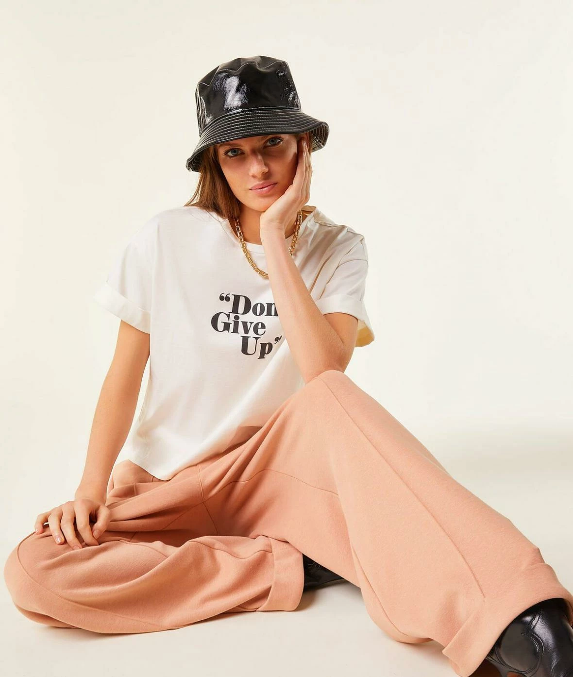Coupe large et tendance pour ce pantalon de jogging revisité resserré à la taille qui donne une allure 70’s casual.