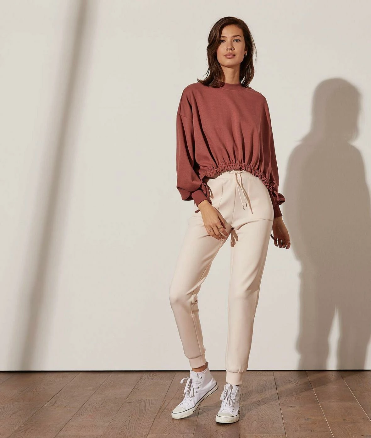 Cette saison, la maille s’adopte en total look. On mixe ce pantalon doux et comfy au sweat coordonné pour un total look chill et chic.