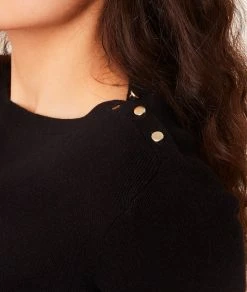 Incontournable et chic, ce pull en maille fine dévoile des boutons dorés sur le col.