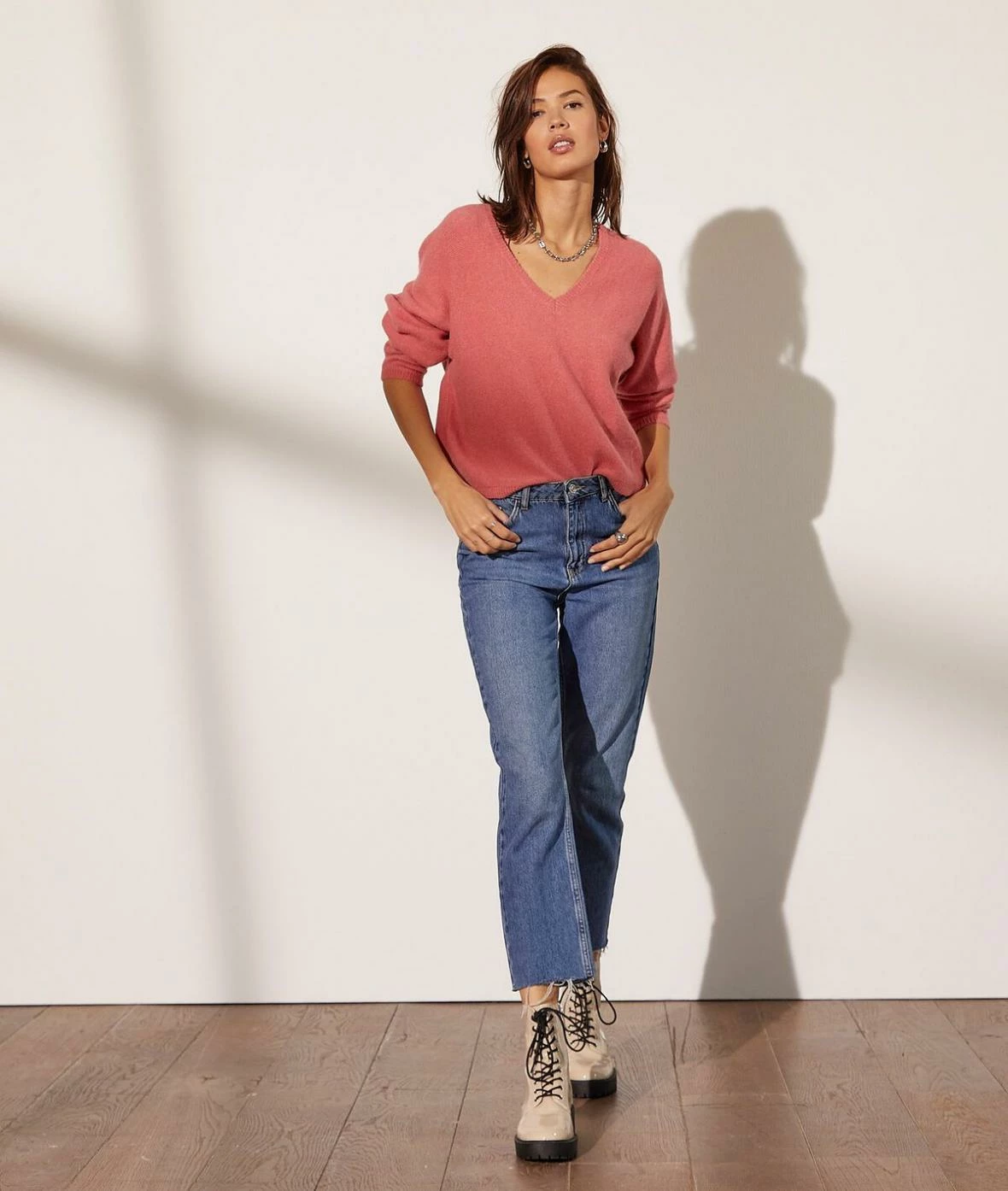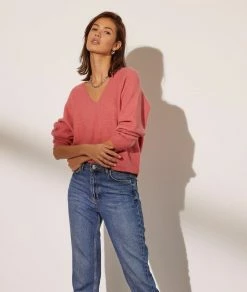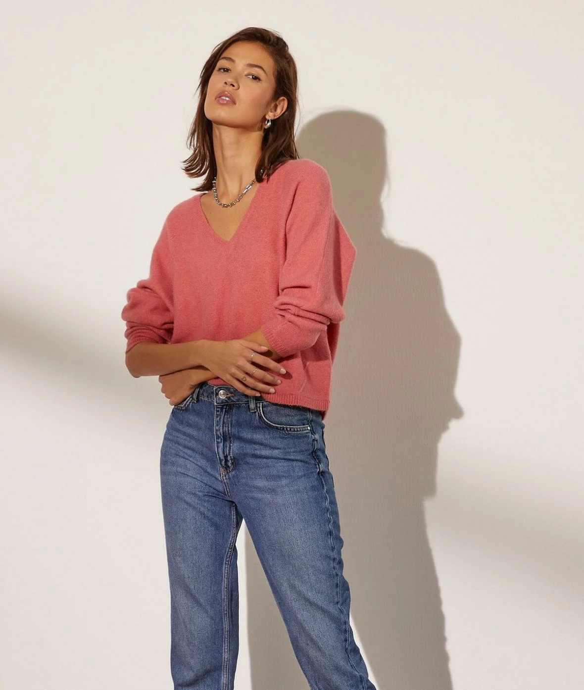 Pulls & Gilets | Pull En Maille Col V ROSE GIVRE | Etam Femme
