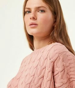 Pulls & Gilets | Pull En Maille Torsadée Col Bateau VIEUX ROSE | Etam Femme