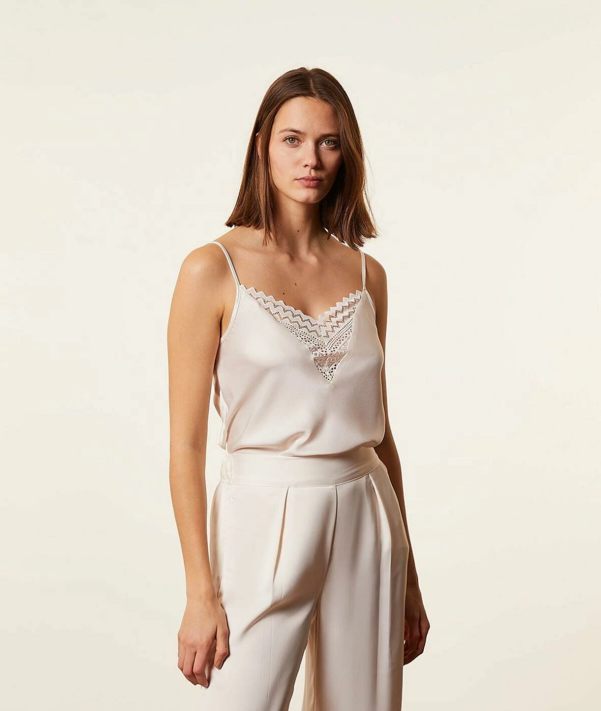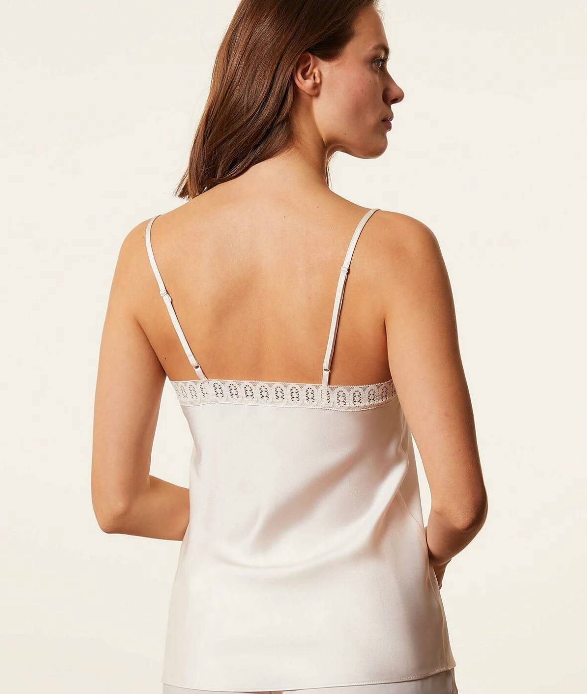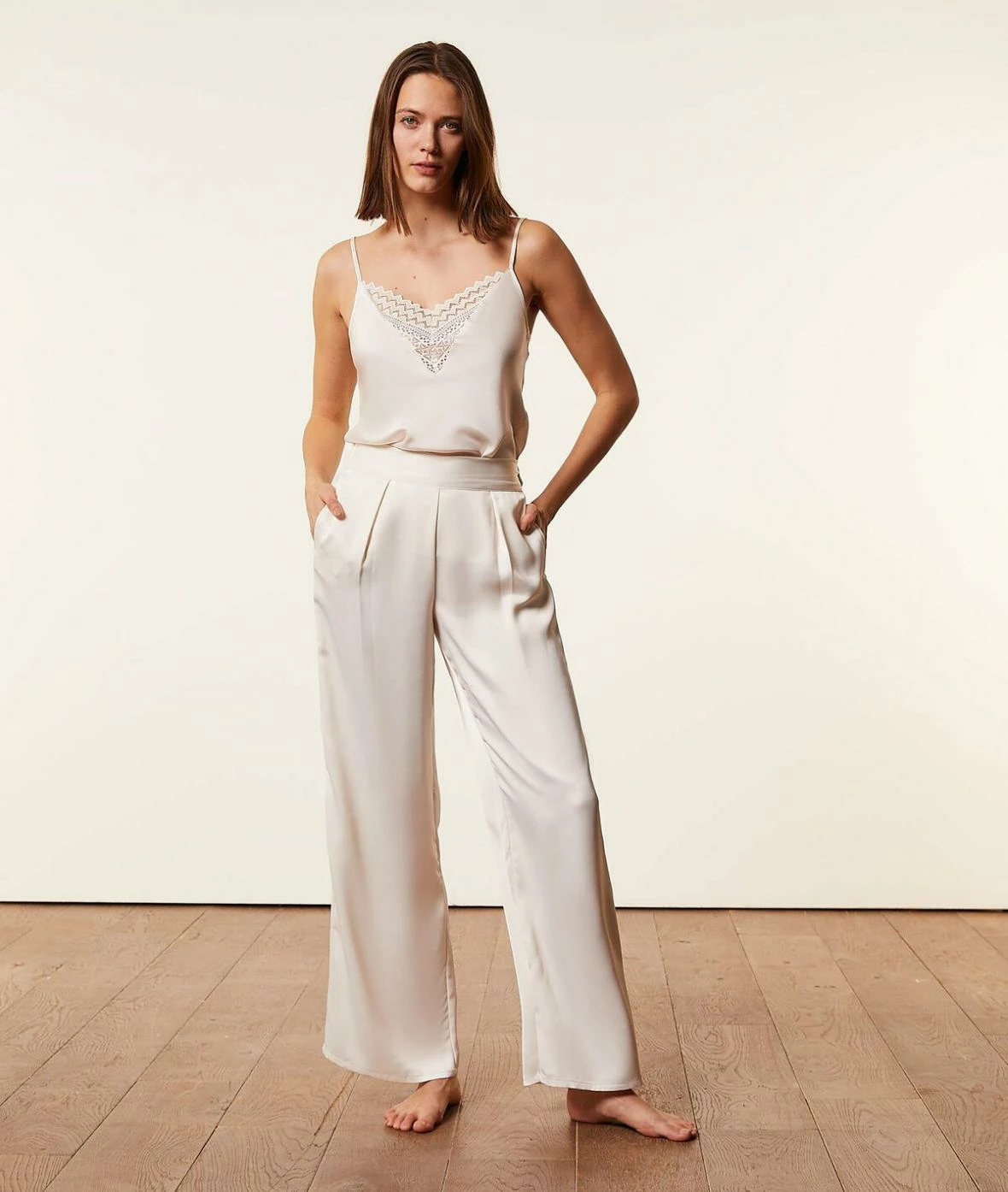 Pyjamas éco-responsables | Caraco Satiné Décolleté Dentelle ECRU | Etam Femme