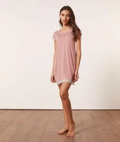 Pyjamas éco-responsables | Chemise De Nuit Bas Dentelle TERRACOTTA | Etam Femme