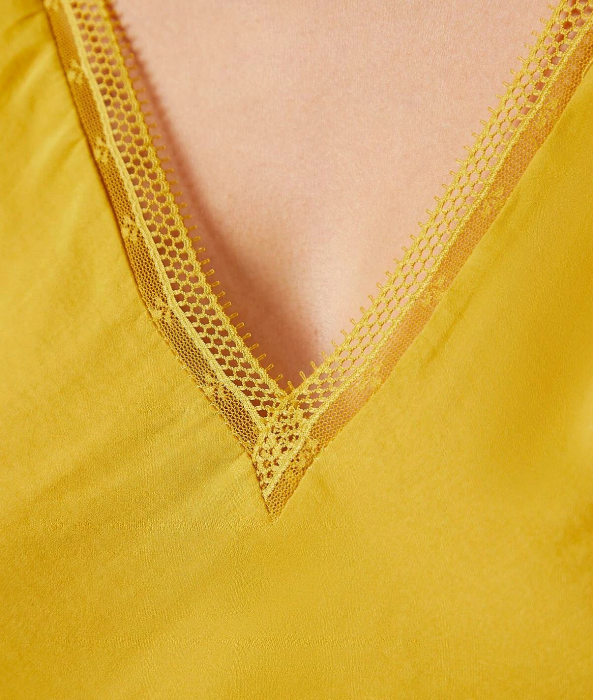 Satin brillant et double décolleté en V : le débardeur parfait pour des nuits sublimées.
