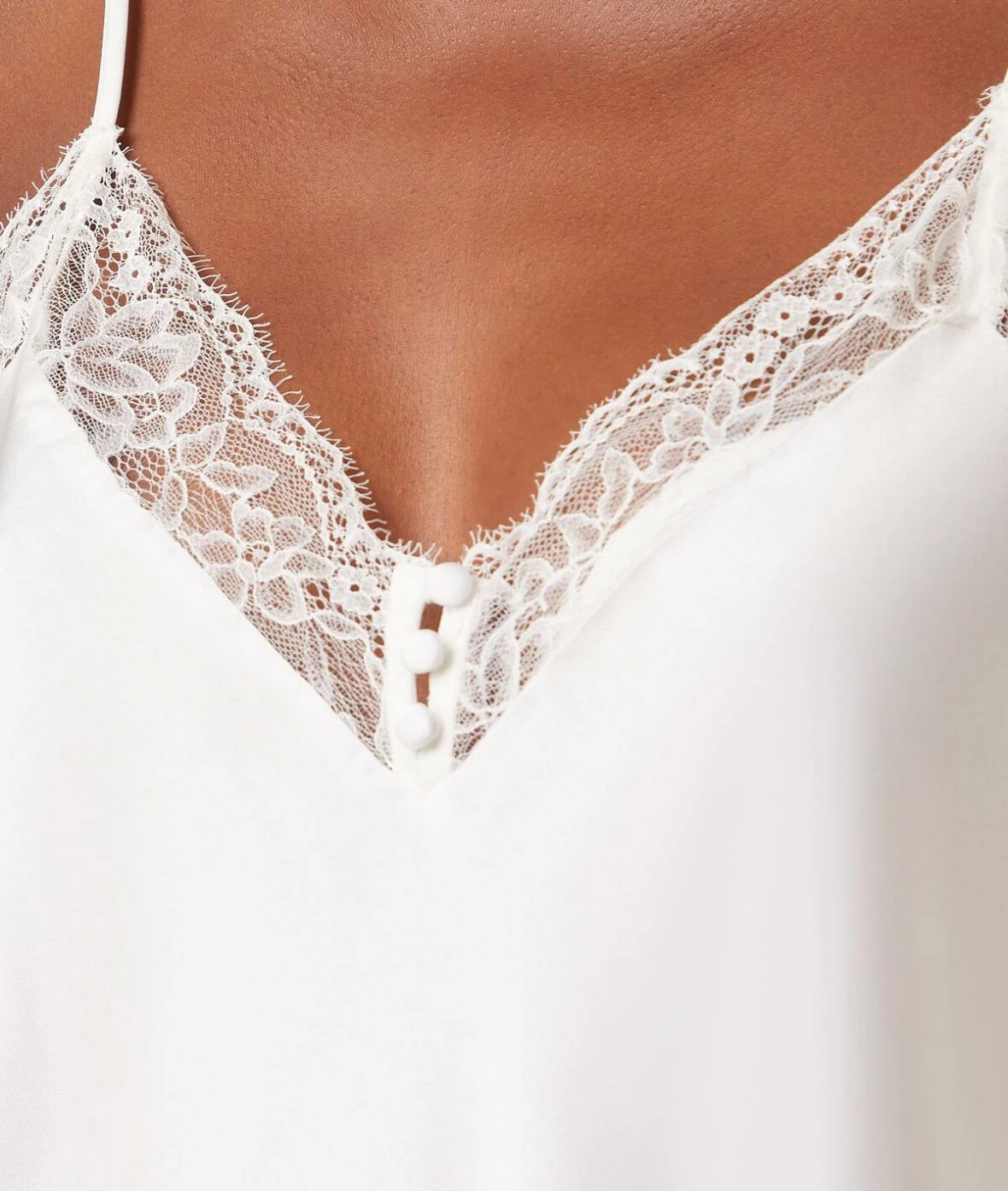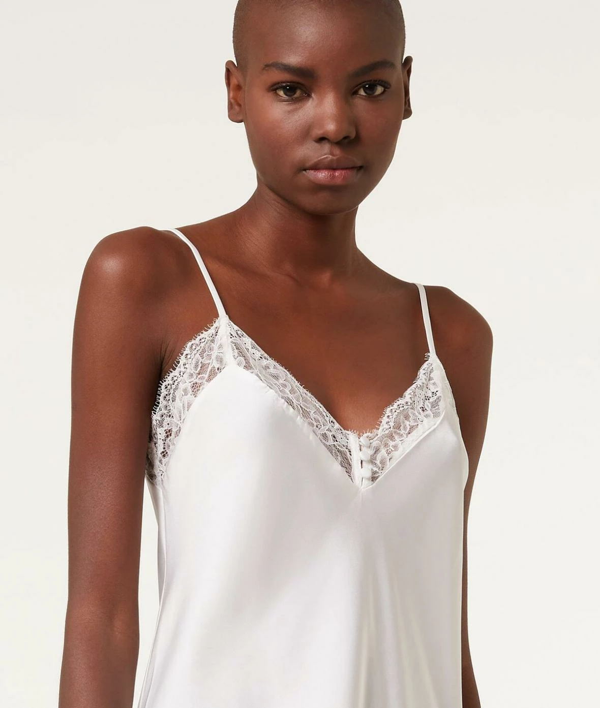 Pyjamas Satinés Et Chics | Nuisette Satinée Détails Dentelle PERLE | Etam Femme
