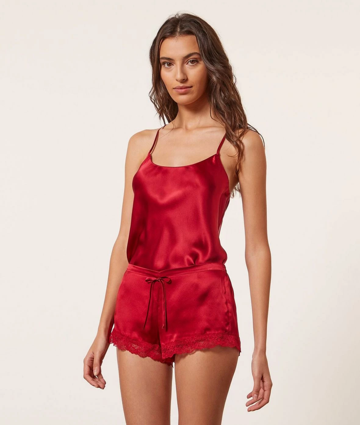 Un débardeur en soie à adopter la nuit en total look avec le short assorti, ou à glisser le jour sous une veste chic.