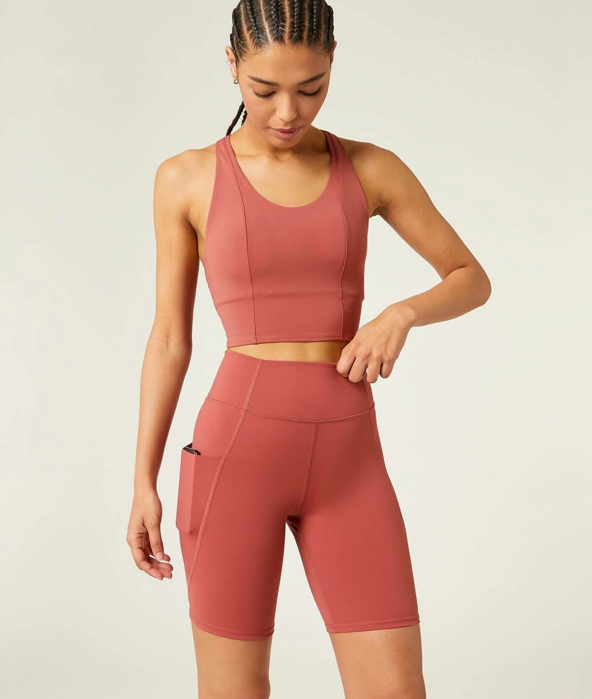 La liberté de mouvement est totale dans cette brassière débardeur dévoilant un décolleté arrondi et un dos nageur. Son maintien medium est idéal pour des sessions de sport à impact modéré.