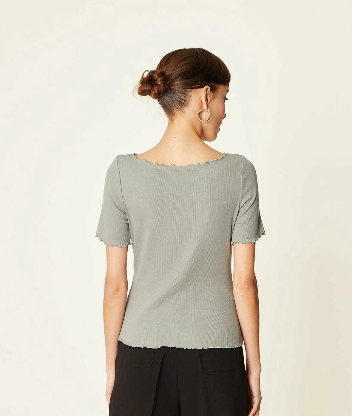 De jolis détails froufrous et un col bateau : succombez au charme de ce t-shirt en version côtelée.